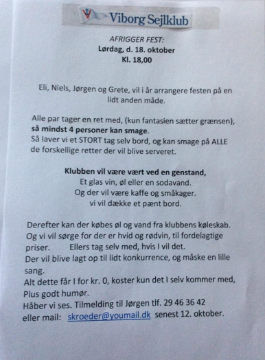 Det er medlemmernes eget ansvar, at melde E-mail adresse / ændring til Viborg Sejlklub, såfremt man fortsat ønsker E-mail fra sejlklubben, bl.a. den eneste måde man nu får nyhedsbreve på.